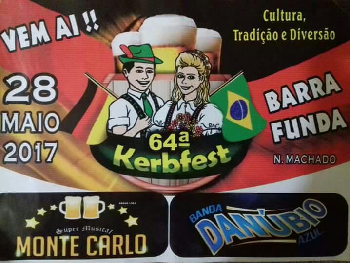 28 de maio de 2017 reserve está data e venha comemorar o 64° kerbfest de Barra Funda Novo Machado. Que será animado pela banda MONTE CARLO, e DANUBIO AZUL.